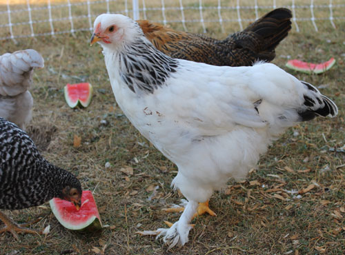 green beans. Tomatoes will be ripe soon. The chickens seem to be about full size.