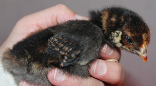 The chicks are getting their feathers. We have quickly switched from keeping them warm to keeping them cool. Heat is hands-down more dangerous. The meat chickens are, as usual, rapidly outsizing the layers. Here’s one of the Ameraucana, which fits nicely in my hand,